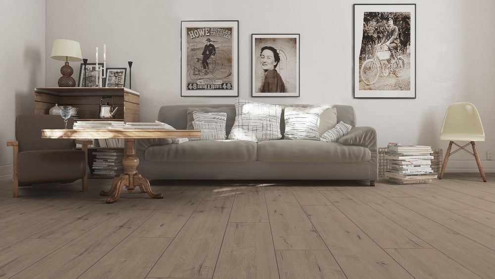 פרקט למינציה בגוון אלון טבעי מבוקע המשרה מראה אותנטי ומדמה עץ טבעי.