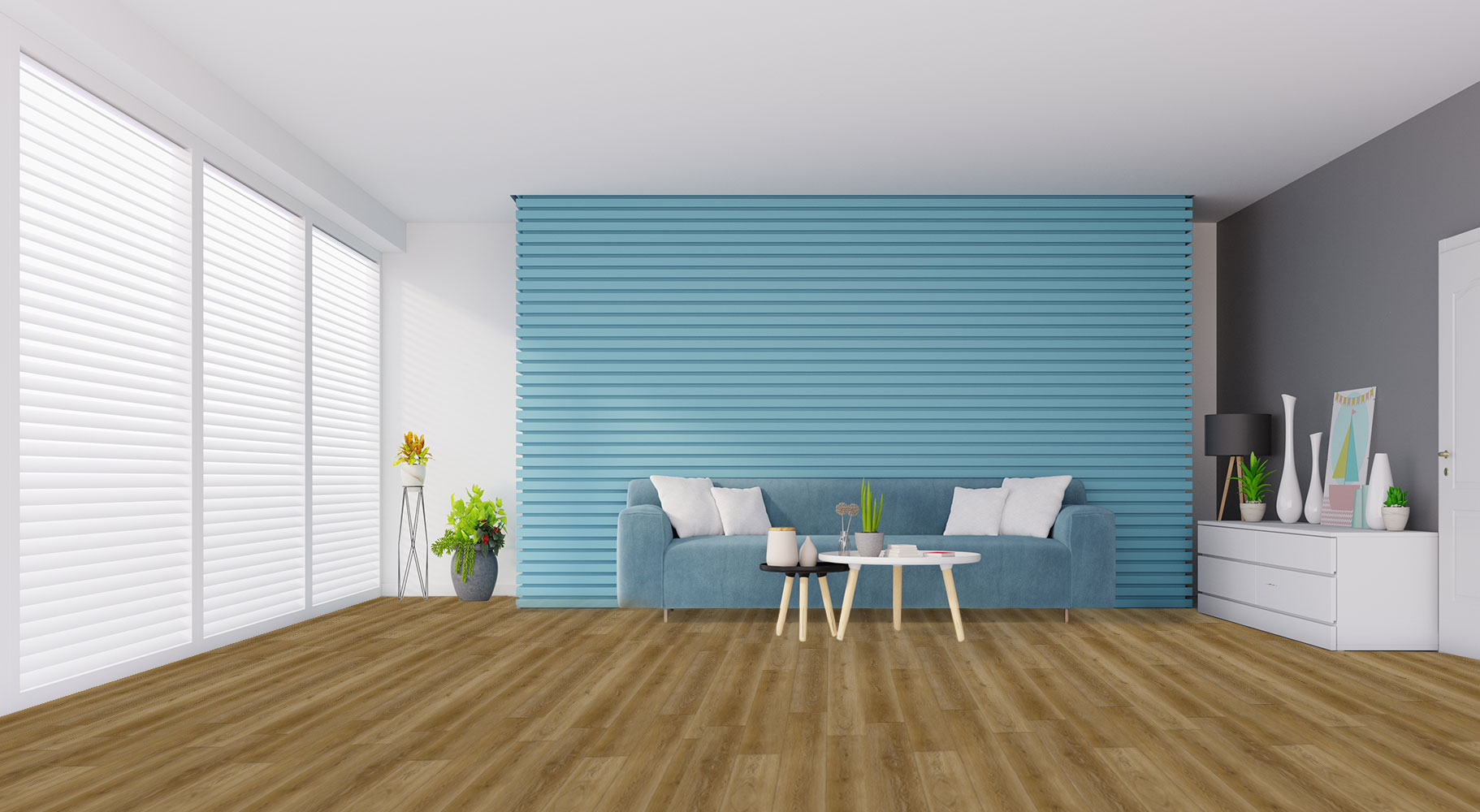 הפרקט הפולימרי מדמה עץ טבעי, קל להתקנה, תחזוקה והחלפה, מסייע בהפחתת רעשי דריכה.